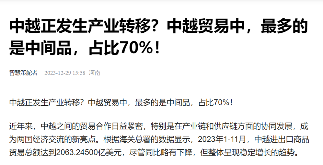 而中越贸易中,中间品占比最多,高达70%!这是因为越南的纺织服装行业规模不断扩大,已成为全球供应链中的重要环节,但仍然存在”瓶颈“,面辅料,纱线的生产不均衡,原料高度依赖进口!