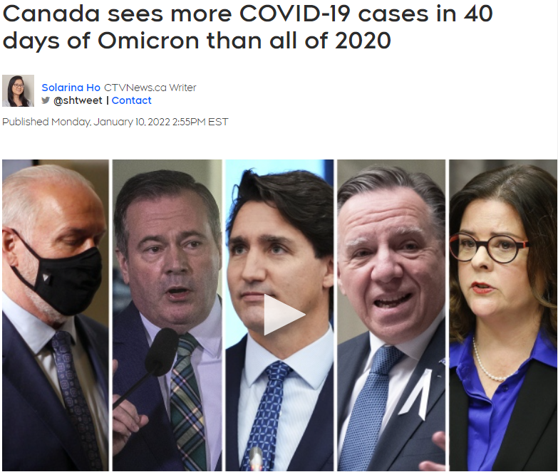 也就是说,Omicron浪潮在加拿大出现的前40天所记录的COVID-19病例就比大流行前一整年的病例数还要多。