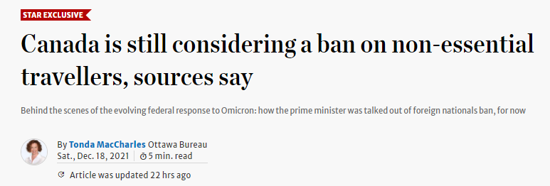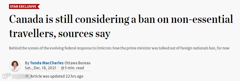“omicron的传播速度是相当快的,如果各国采取封锁措施或限制进出航班,加拿大人可能会发现自己陷入困境。”