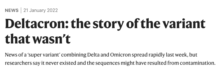 其实大家对这个“全新毒株”并不陌生,它就是从去年年底就开始在民间流传的“Deltacron”——即Delta和Omicron的组合,只是现在才正式被确认。