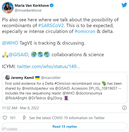 世界卫生组织表示,会对该毒株进行持续的追踪和讨论。