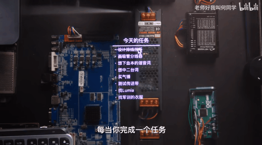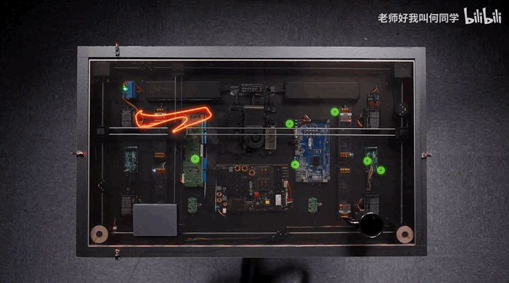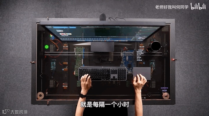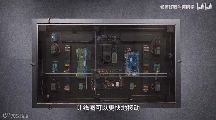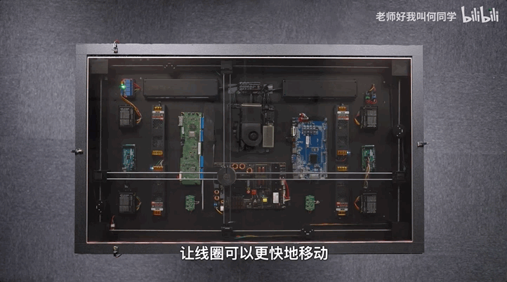 另外,每隔一小时,桌子还会自动把水杯给你递上。何同学通过在线圈上加了一块磁铁就实现了。