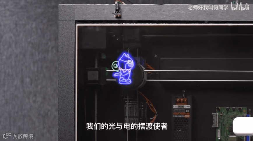 何同学把桌面改了透明屏幕,将手机放置在桌面上,就会出现一只可爱的小猫:「光与电的摆渡使者」。