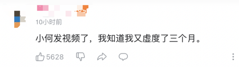 「小何发视频了,我知道我又虚度了三个月。」