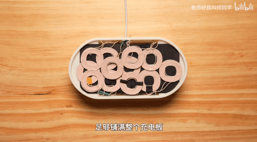 其一,用一堆无线充电线圈铺满整个无线充电板的内部。