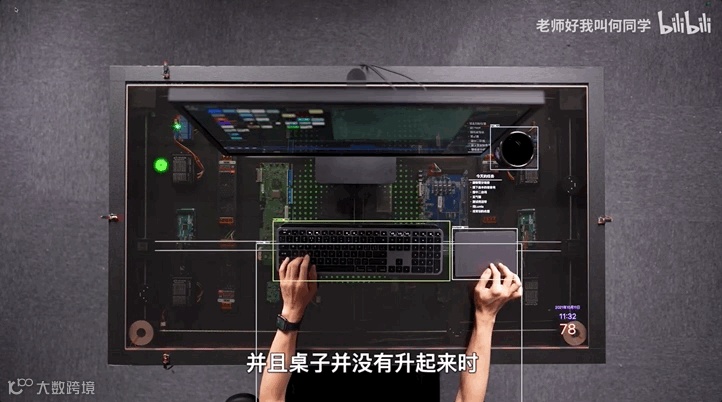 天花板上架一个摄像头,用来设别设备摆放的位置。