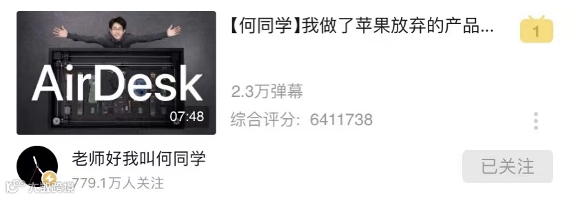 咕咕了三个月之久,10月17号,何同学再次带着自己全新的奇思妙想产品AirDesk回归,引爆B站热搜!
