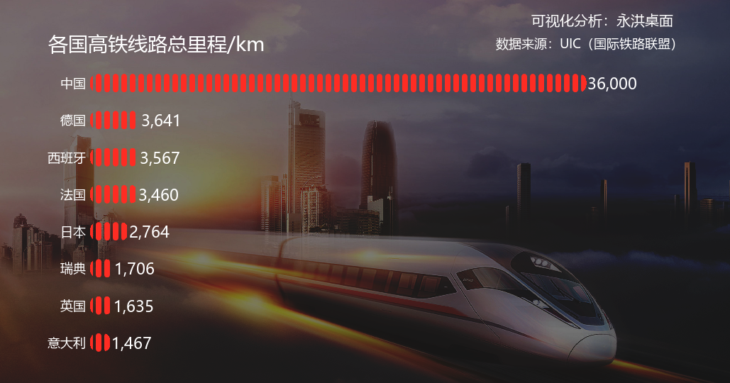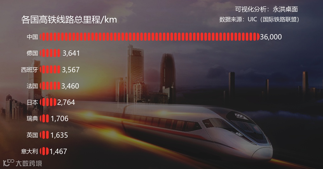 ▲ 各国高铁路线总里程