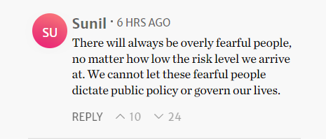 “有的人就是胆子太小,不管防疫措施是什么样的,我们不能让这些胆小鬼影响我们的公共政策和我们的生活。”