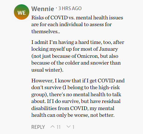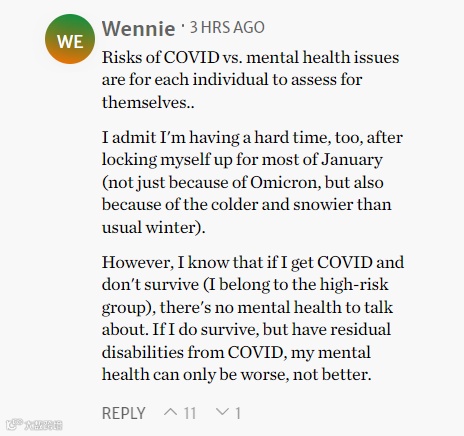“心理健康是很重要,但是如果我感染了病毒,而且还死了,那我就连心理健康出问题都没机会了。”