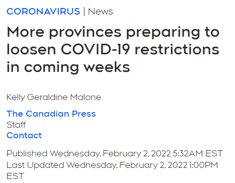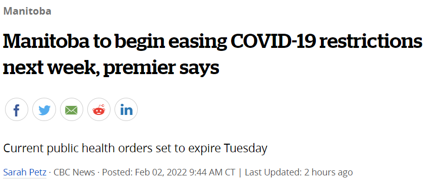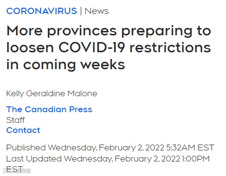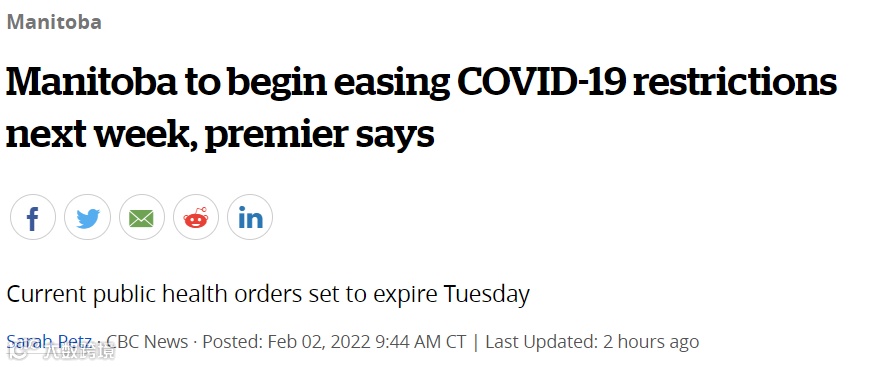 另外,新斯科舍省省长1月26日也曾宣布,称希望在2月份放松防疫限制,该省现有的防疫措施将于2月14日结束,他表示,希望在 2 月 7 日左右放松对艺术、文化和体育的一些限制。