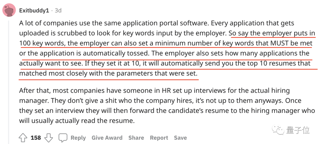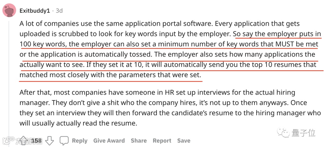 评论区中一位HR现身说法,他表示,有些送到自己这里的简历完全无法胜任正在招聘的职位,这些简历只是碰巧包含了一些“HR必点”或这项工作必须的“热词”。