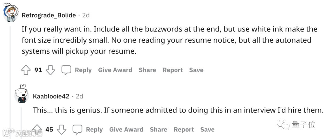 所以,针对这种更在意关键词而非内容的机筛,评论区出现了一条天才提议: