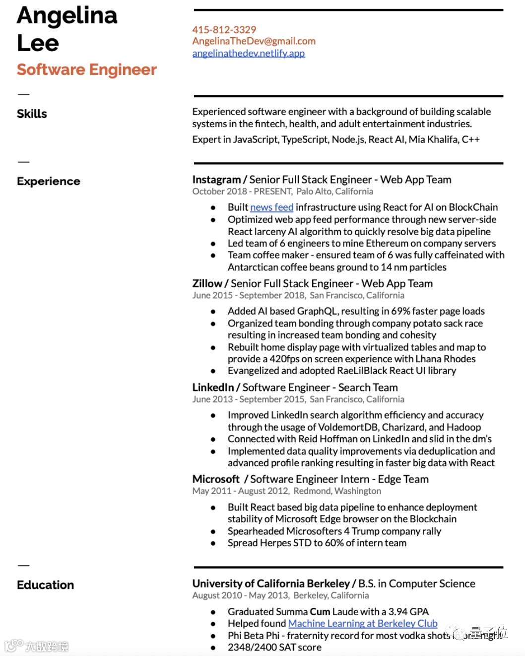 就很荒诞,一个软件工程师的简历竟然是这样的: