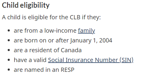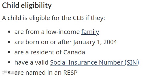 要符合领取CLB的资格,孩子必须是加拿大居民,于2004年1月1日或之后出生,并且来自低收入家庭。