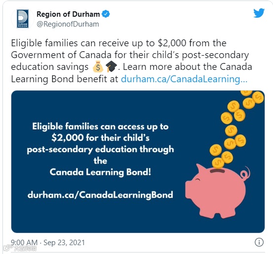 加拿大税务局(CRA)本周发布一则推文,提醒合资格的家长申请最高2000元的联邦教育补贴,而他们需要做的只是为孩子开设一个储蓄计划账户。