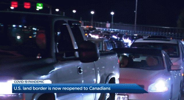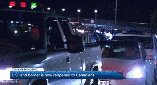 据Global News现场实拍,天还没亮时,加美边境就排满了汽车。这是过去20个月以来,加拿大人首次驾车入境美国。