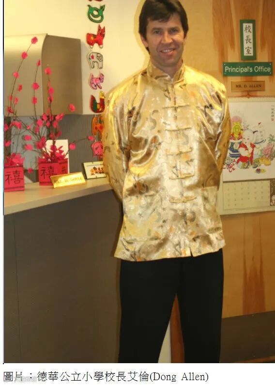 德华小学每年的农历新年庆祝活动,都可以看到艾伦校长穿上一套整齐的传统中国服装,向家长和学生们拜年和发红包,用国语说:“新年快乐!”并主持庆祝会的各项活动。到了万圣节,他则穿上一双大脚丫,引得孩子们笑呵呵。