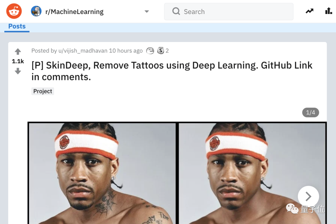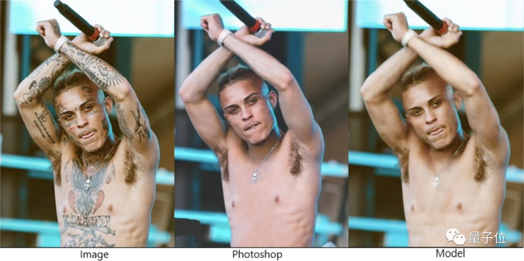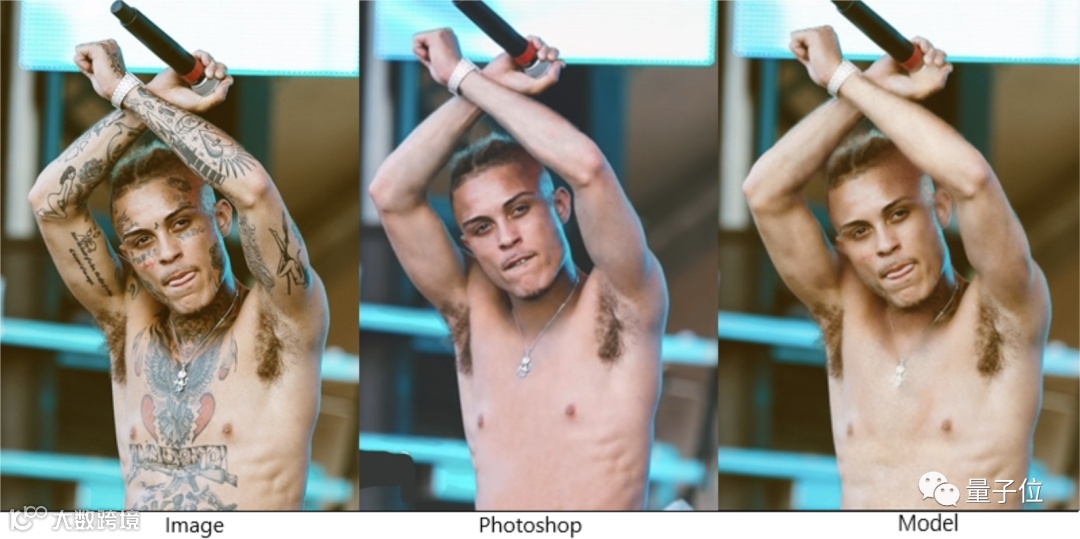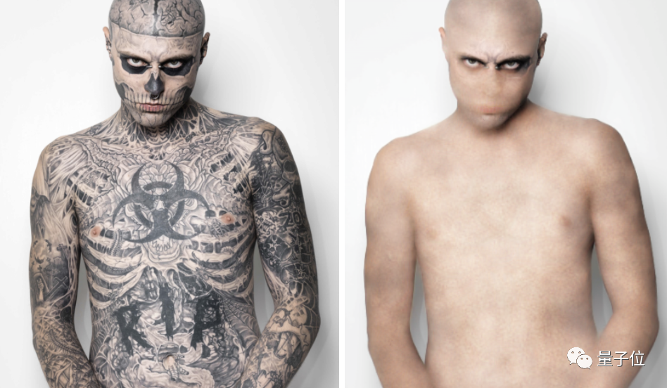 这个工具叫做SkinDeep,开发者利用深度学习去掉照片中的纹身,力图得到与Photoshop媲美的效果,从而减少工作量。