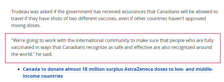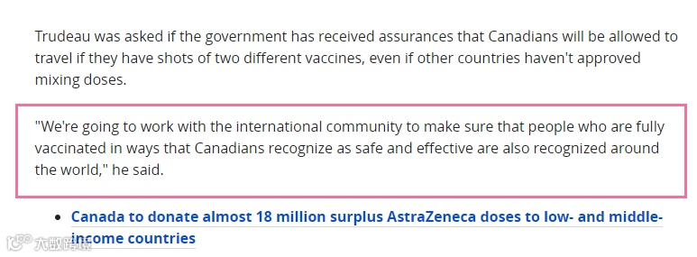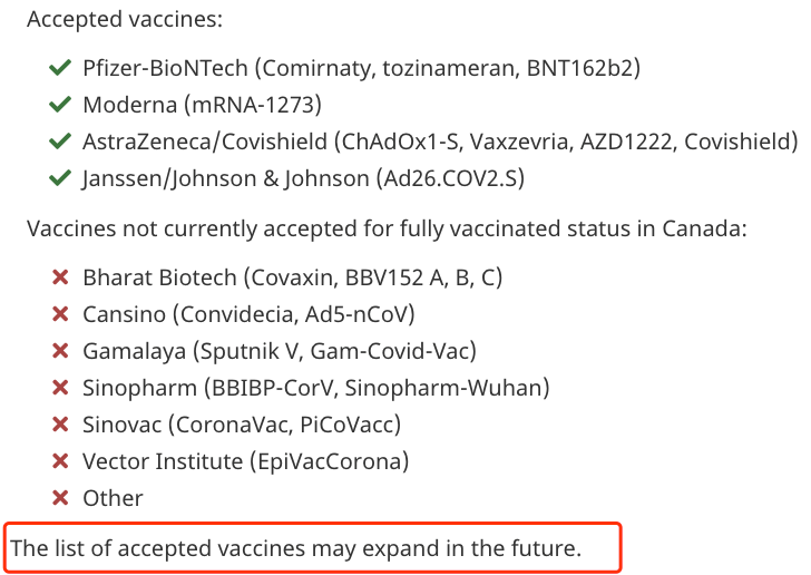 事实上,加拿大正在研究世卫组织(WHO)已经认可的几种疫苗,以确定扩大疫苗豁免的范围,为”国际旅行疫苗护照“做准备。