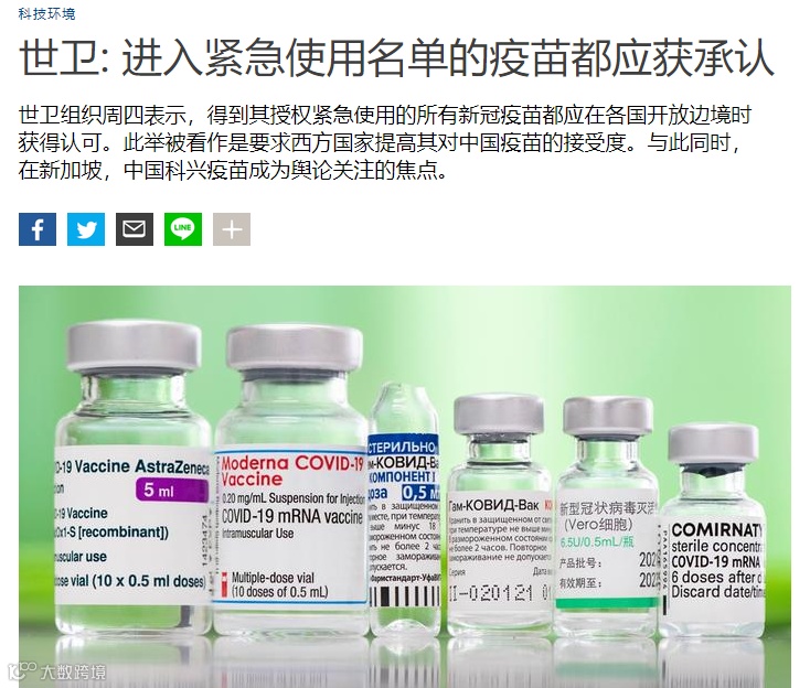 迄今为止,世界卫生组织共向六款疫苗开了绿灯。其中除了BioNTech/辉瑞、Moderna、强生和阿斯利康生产的疫苗外,也包括中国科兴疫苗和国药疫苗。