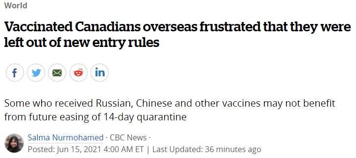 现在,只对前4种疫苗入境进行隔离豁免。不仅是中国人,不少加拿大人对此也很不满。