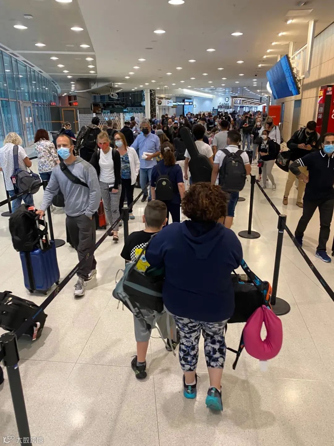 加拿大边境服务局表示,自本周一以来,入境人数增长了约25%,机场早已人满为患。