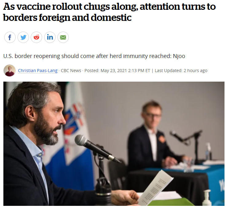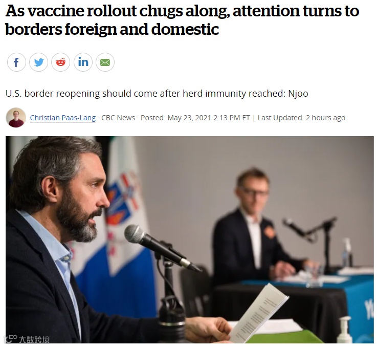 这一开放也包括了加美边境的协议。美国总统拜登曾表示,应该争取在7月4日前恢复两国边境往来的正常。