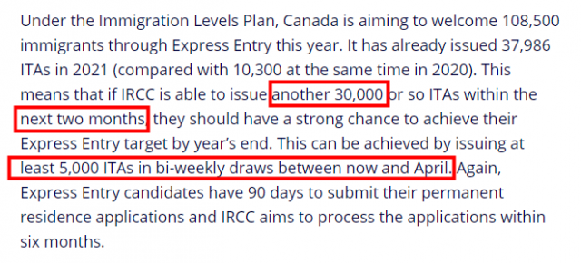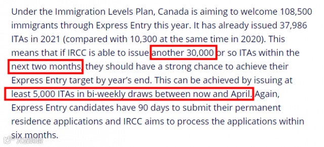 如果IRCC想在2020-21年度结束之前实现EE移民项目的配额目标,将需要在接下来的两个月内再发出3万份左右的ITA(这意味着从现在到四月,每两周邀请至少5,000人)。