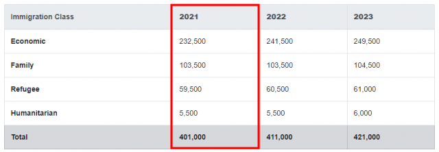 据悉,由于疫情的影响和限制,加拿大去年仅接受了18.4万新移民,没有实现34.1万的目标。为了弥补损失,加拿大政府2021年设定了40.1万新移民的目标。