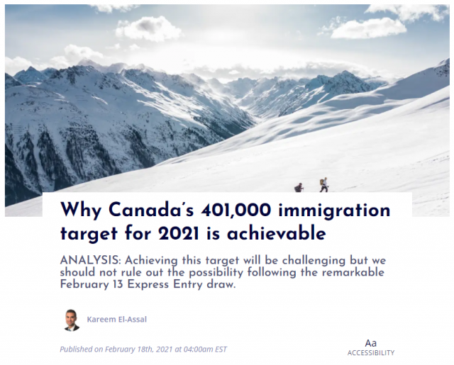 对此,移民律师事务所发言人Kareem El-Assal解释说,IRCC此次如此大规模的抽签行为,旨在让更多有资格的境内申请人拿到PR,以实现2021年的移民目标。El-Assal认为在政府积极的推动下,加拿大有望在今年实现40.1万新移民的目标。