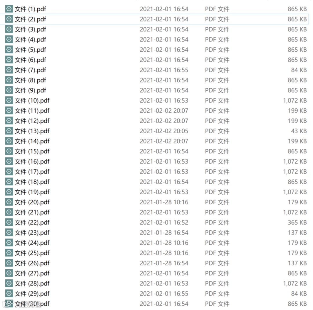 也就是需要根据每个PDF内容来批量重命名一大堆文件,最终效果如下