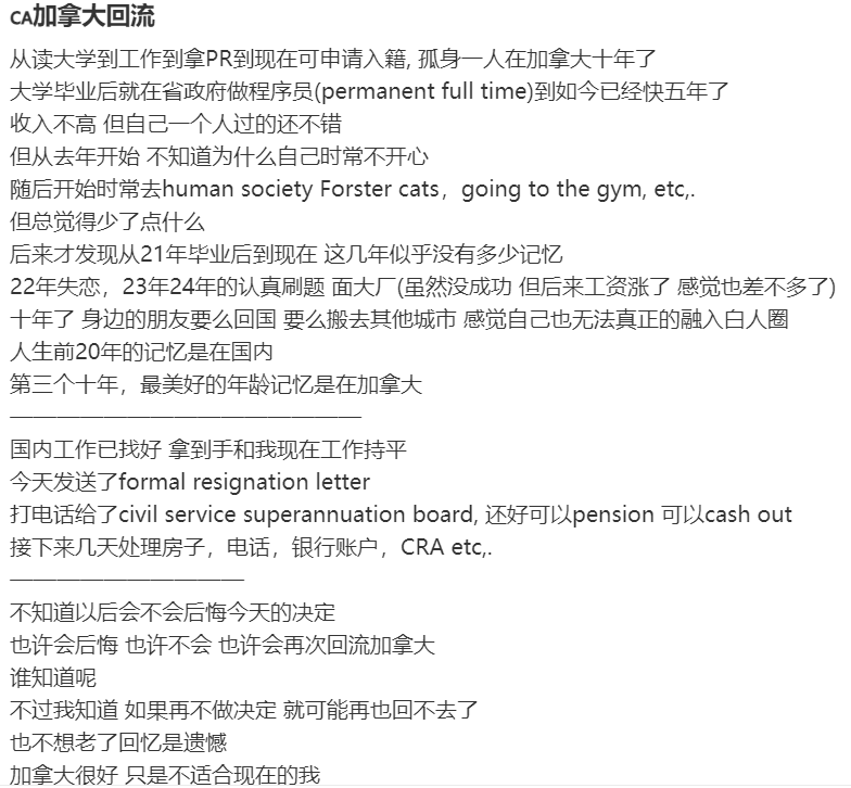 在小红书上,就有不少加拿大华人分享了他们离开加拿大去别的国家,或者是回流的经历。