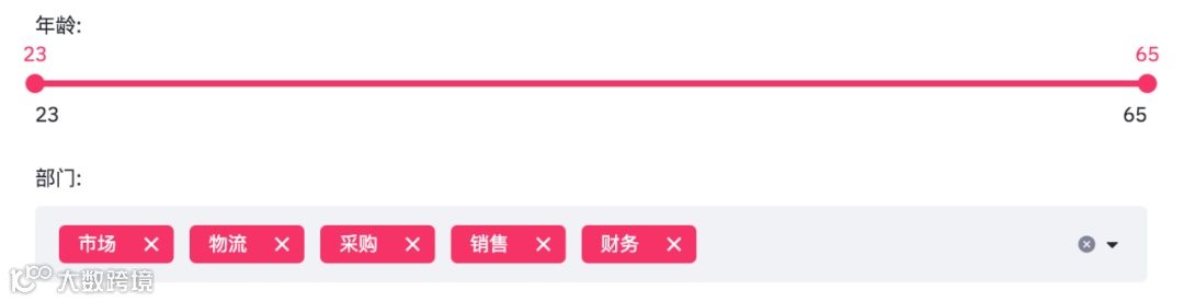 年龄是从23至65,部门则是市场、物流、采购、销售、财务这几个。