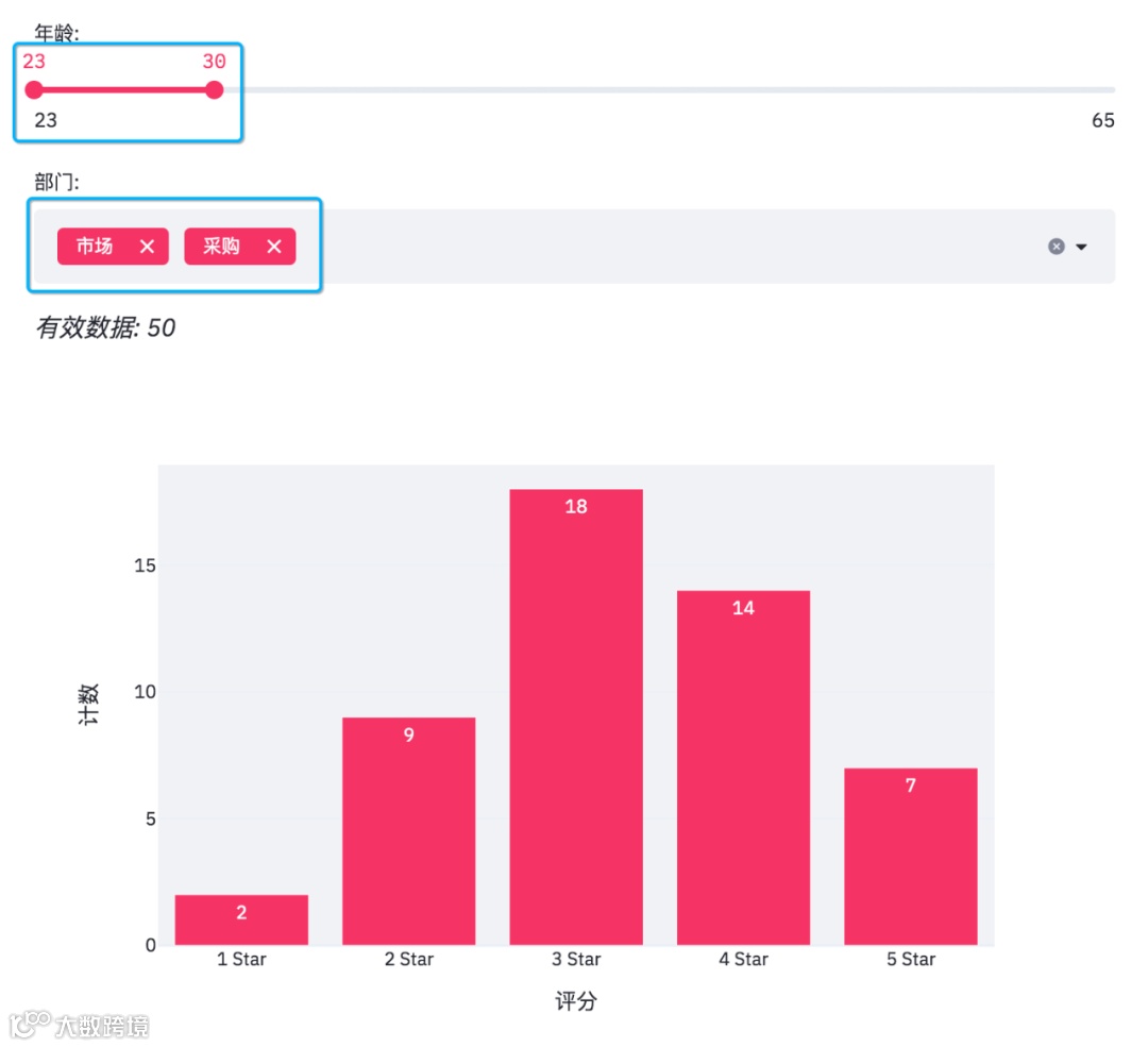 mask = (df['年龄'].between(*age_selection)) & (df['部门'].isin(department_selection))