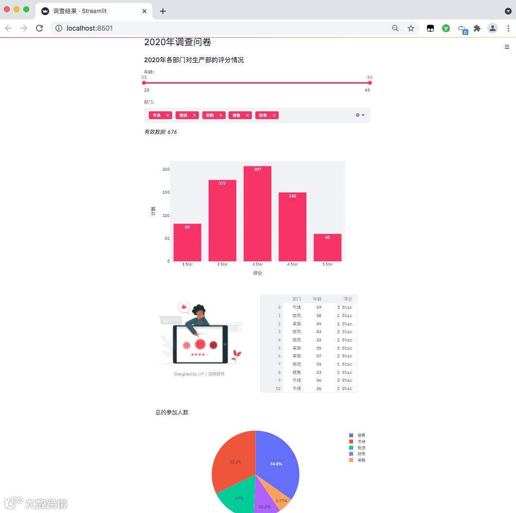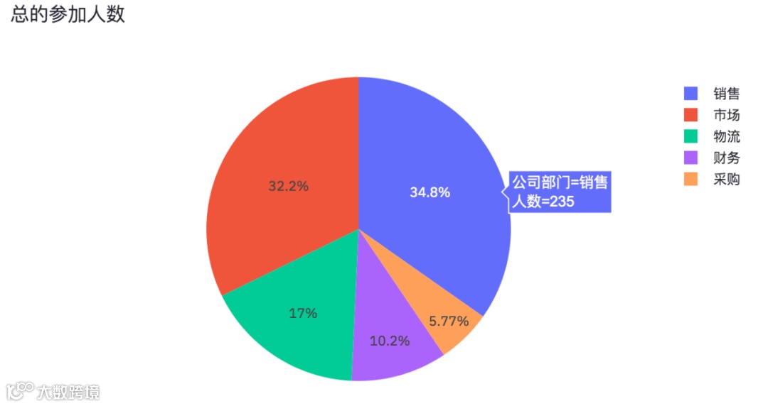 各部门参加问卷调查的人数,也是一个可以交互的图表。