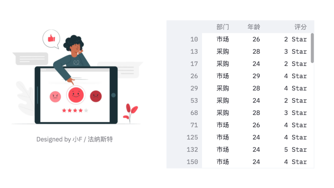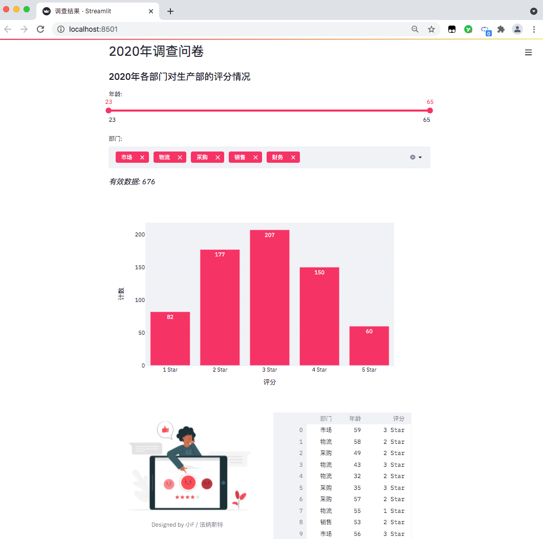 有效数据总计约676条,匿名问卷,包含问卷填写人所属部门,年龄,评分。