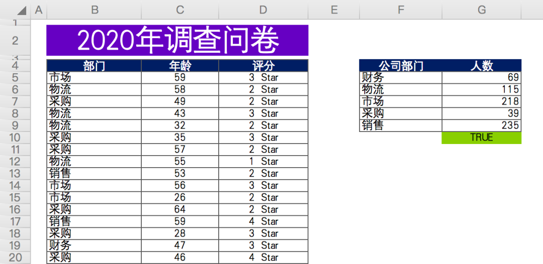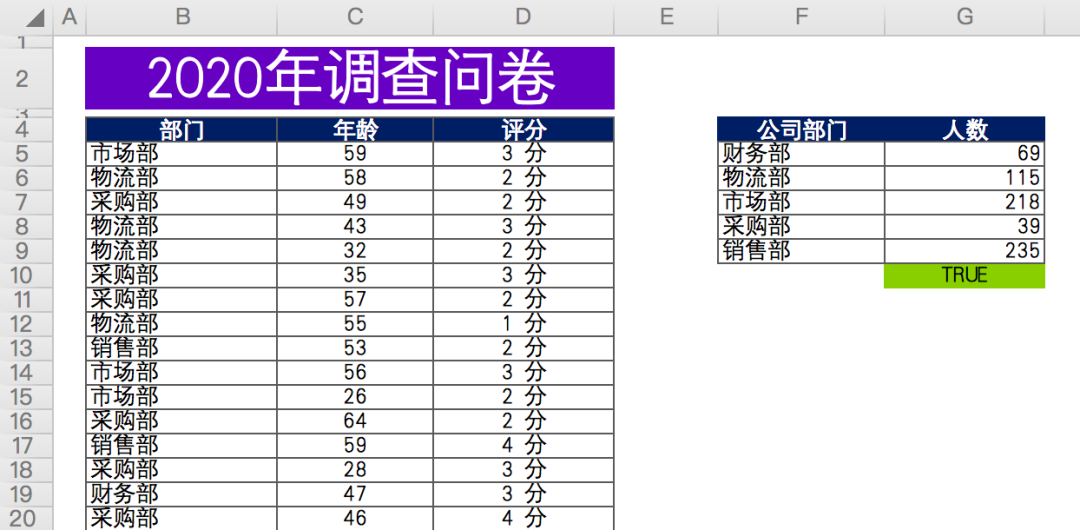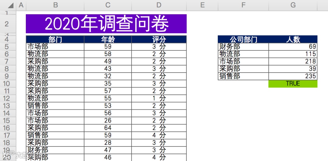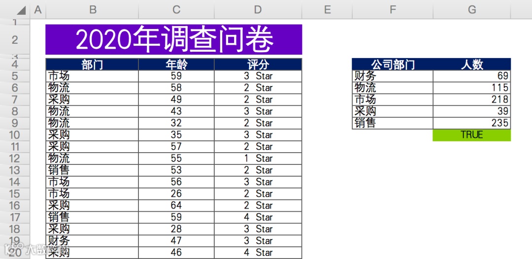 最后对各部门参与人数进行汇总计数(右侧数据)。