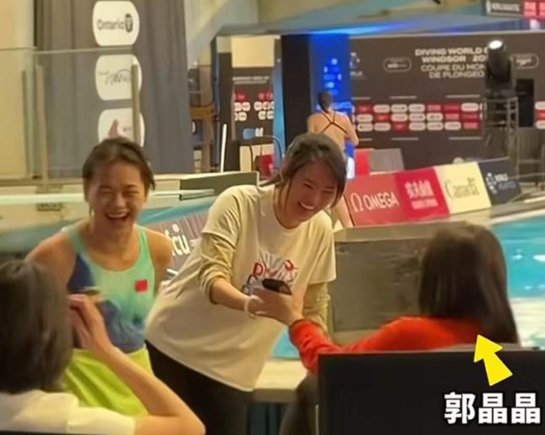 郭晶晶这次来加拿大,其实是担任赛事裁判监督,但她一到温莎就马上跑到泳池边看望正在训练的全红婵。