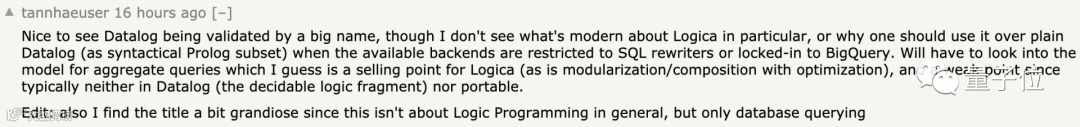 还有人觉得这不是通常意义的逻辑编程,仅仅搞了搞数据库查询。