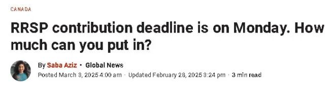 针对2024年报税季,加拿大人向注册退休储蓄计划(RRSP)供款的截止日期是3月3日今天,以便将其计入年度的税务扣除额。