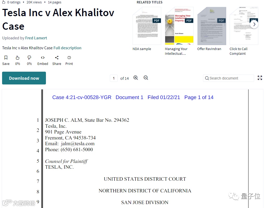 目前,特斯拉已经向加州圣何塞法院递交了起诉书,官司正式开打。