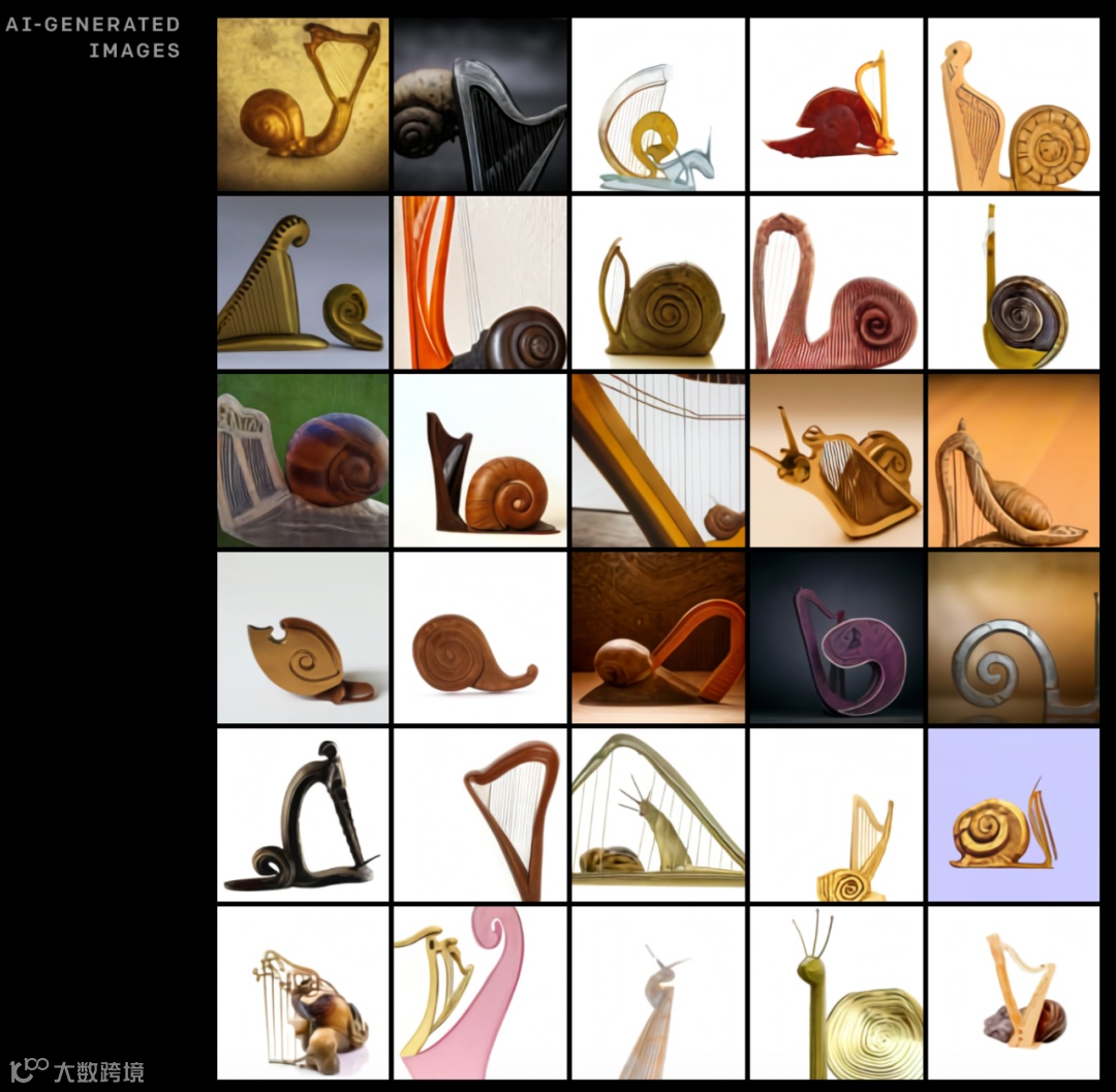 下列示例就将「竖琴」和「蜗牛」这两个八竿子打不着的事物组合到了一起: