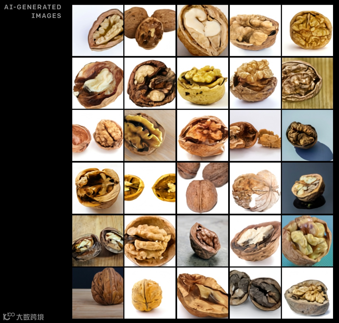 DALL·E 还能够渲染出横截面视图的内部结构,以及通过微距相片展现事物的外部结构。例如核桃的横截面视图: