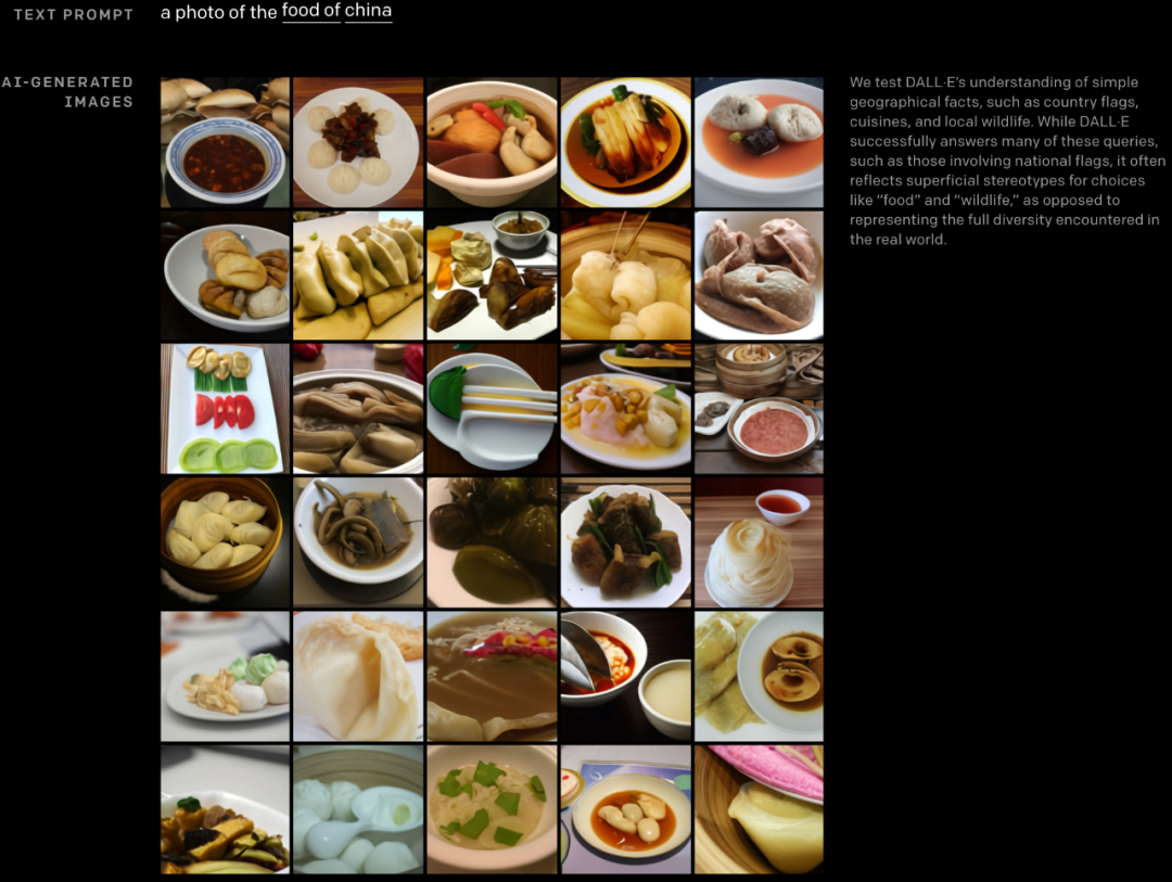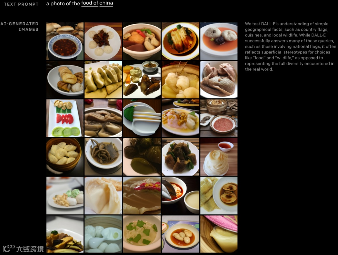 DALL·E 还能学习地理事实、地标建筑和街区。它有时候可以非常精确地学习这些知识,但有时候又会在其他方面出现缺陷。例如,给出文本「中国美食」,它可以生成大量相关美食图像,但无法完全涵盖现实中我国美食的多样性。