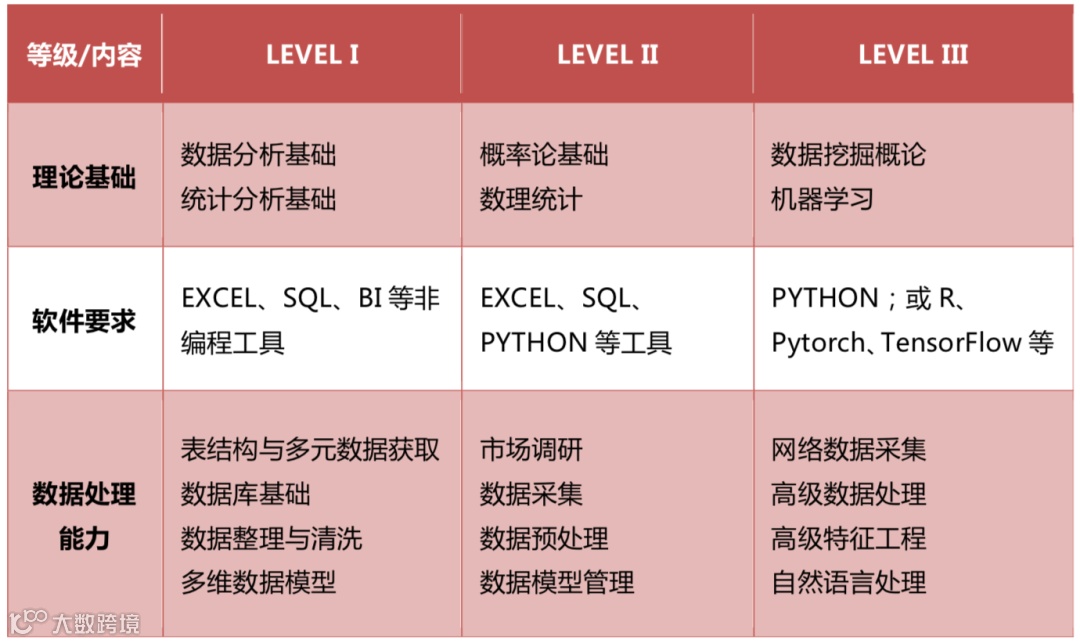 认证覆盖行业包括互联网、金融、咨询、电信、零售、医疗、旅游等,涉及岗位包括大数据、数据分析、市场、产品、运营、咨询、投资、研发等。