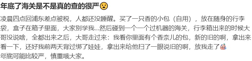 还有一位网友也分享了自己在海关被拦的经历,还好最后是虚惊一场:
