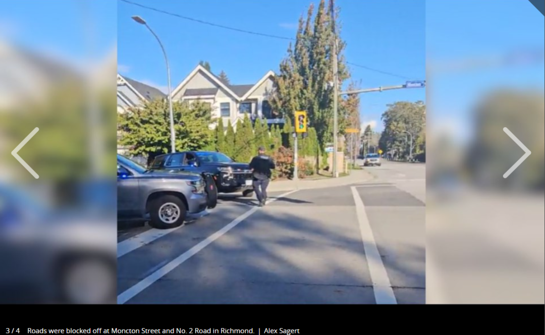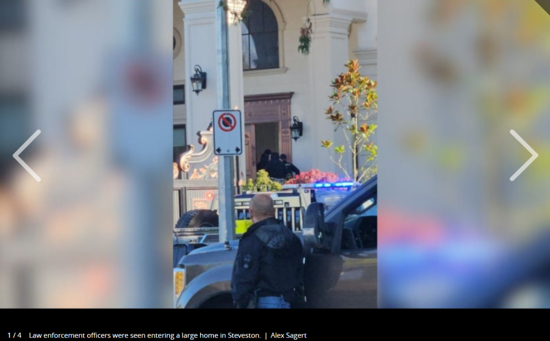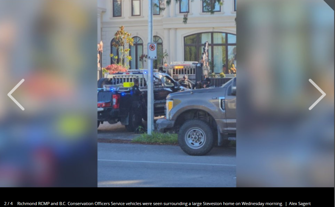 10月16日上午10点,列治文市史蒂夫斯顿(Steveston)社区突然警笛大作,十多辆警车和执法车辆呼啸而至,将Moncton Street和No. 2 Road交叉口附近的一栋豪宅团团围住。