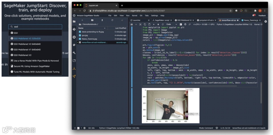 在之前的项目中,我手动训练过 SSDMobileNetV2 目标检测模型。这次我选择使用 Amazon SageMaker JumpStart,只需一键操作就可以从 TensorFlowHub 和 PyTorchHub 部署 AI 模型。这里有 150 多个可选的模型,其中就有经过完全预训练的 SSDMobileNetV2。
