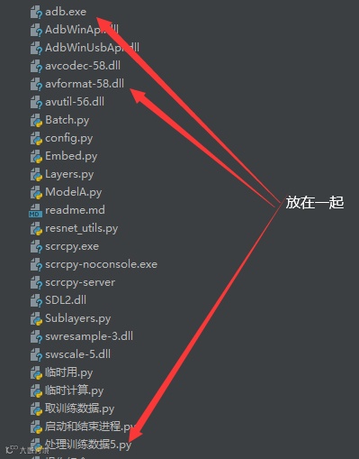 然后安装 scrcpy,这个安装教程很多,百度一搜一大把,将所有东西放在与下载的代码同级目录下。